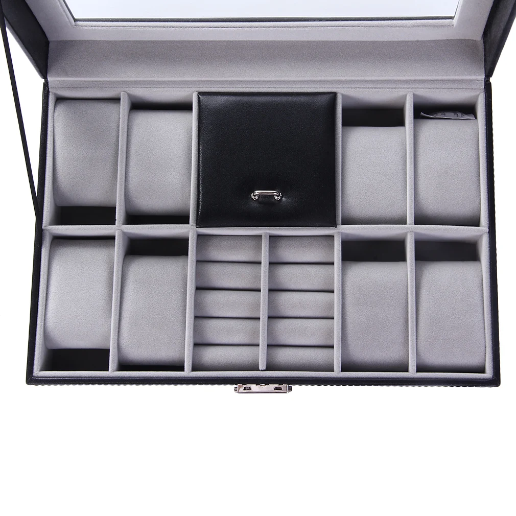 2 В Одном 8 Сетки+3 Смешанных Кожаные Часы Кейс Для Хранения Часов Организатор Роскошные Ювелирные Изделия Кольца Дисплей Часы Коробки Черная Коробка Для Часов