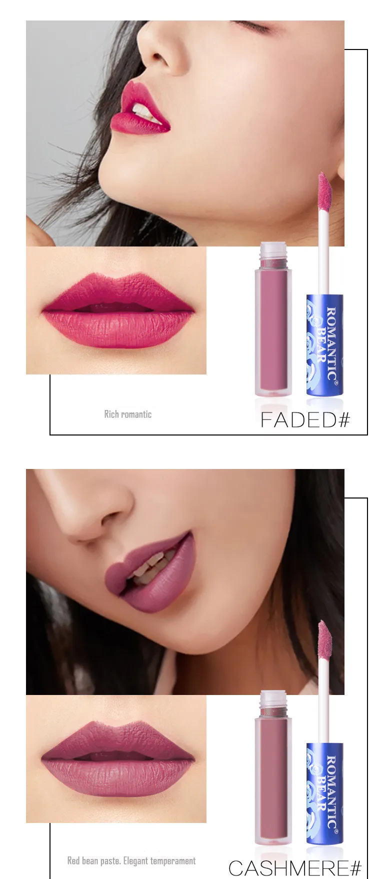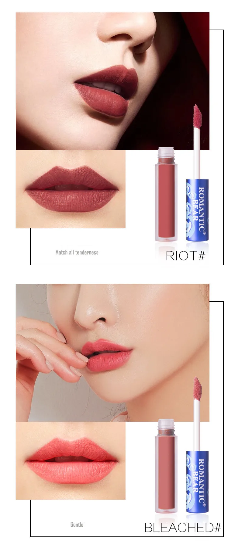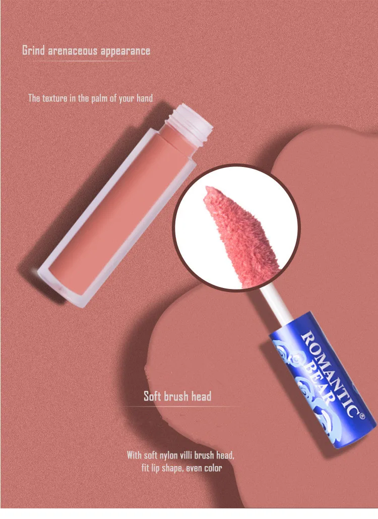 1. 100% романтичный бренд медведя с голубой упаковкой и высококачественной матовой помадой; Характеристика: Долговечность/Водонепроницаемость/водонепроницаемость; Бархат матовый, очень насыщенный, сильно пигментированный, легко носить. Посылка включает в себя: матовая помада 12 разных цветов