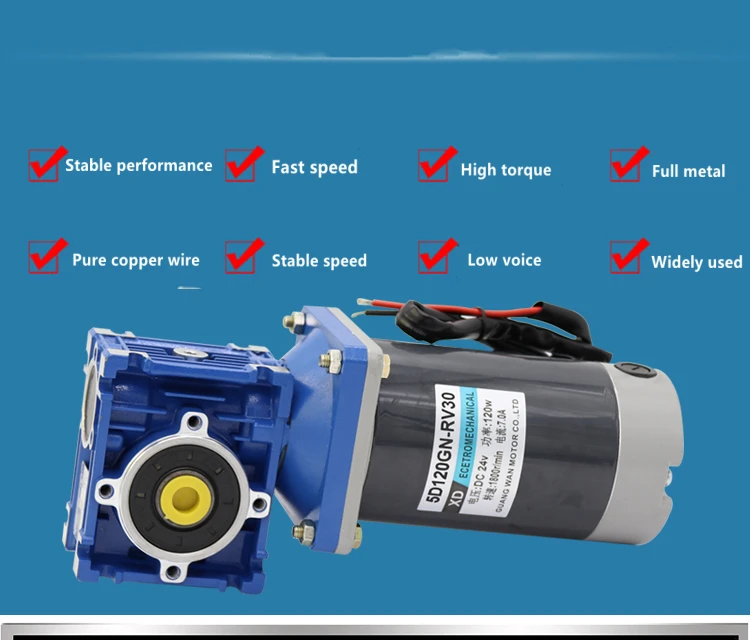 120 Вт NMRV30 DC Червячный мотор-редуктор 12 В 24 В RV30 с самоблокирующейся скоростью Регулируемый двигатель постоянного тока CW CCW