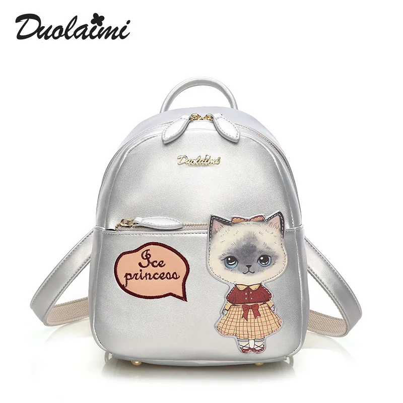 Duolaimi 2017 Мода Новые Женские сумки качественные PU кожаные женские рюкзаки милые животные Сладкий кот ветер школьный ребенок маленький рюкзак
