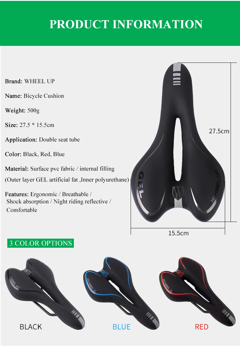 Размер: 275 мм * 155 мм Цвет: красный/черный Материал поверхности: кожа ПВХ Наполнитель: гель + полиуретан Подходящие модели: горные велосипеды, дорожные велосипеды, складной велосипед Вес: 450 г Замеры сделаны вручную, поэтому возможны 0,5-1 см, связанная с особенностями измерения вручную. (1 дюйм = 2,54 см)