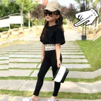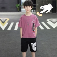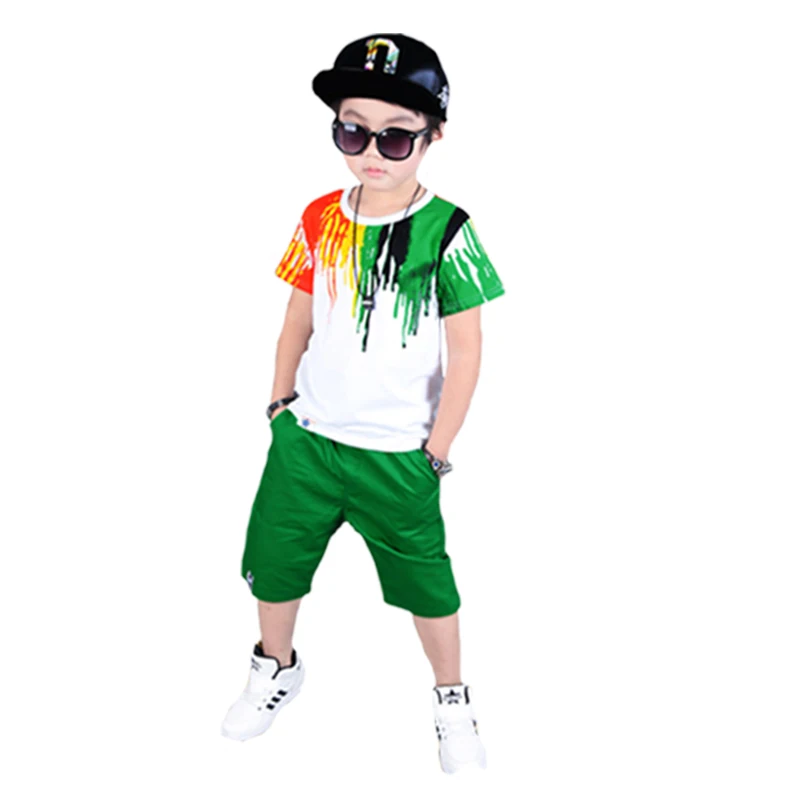 Clothing suit fashion graffiti boy summer short-sleeved sweatshirt T-shirt coat + five-point pants baby Quality children clothes