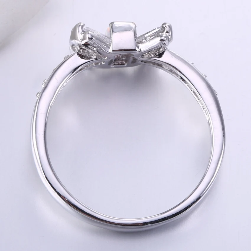 Продукт: Модные кольца с бантом Вечерние Главный камень:Создан огненный опал Боковой камень:Ясно AAA Цирконий