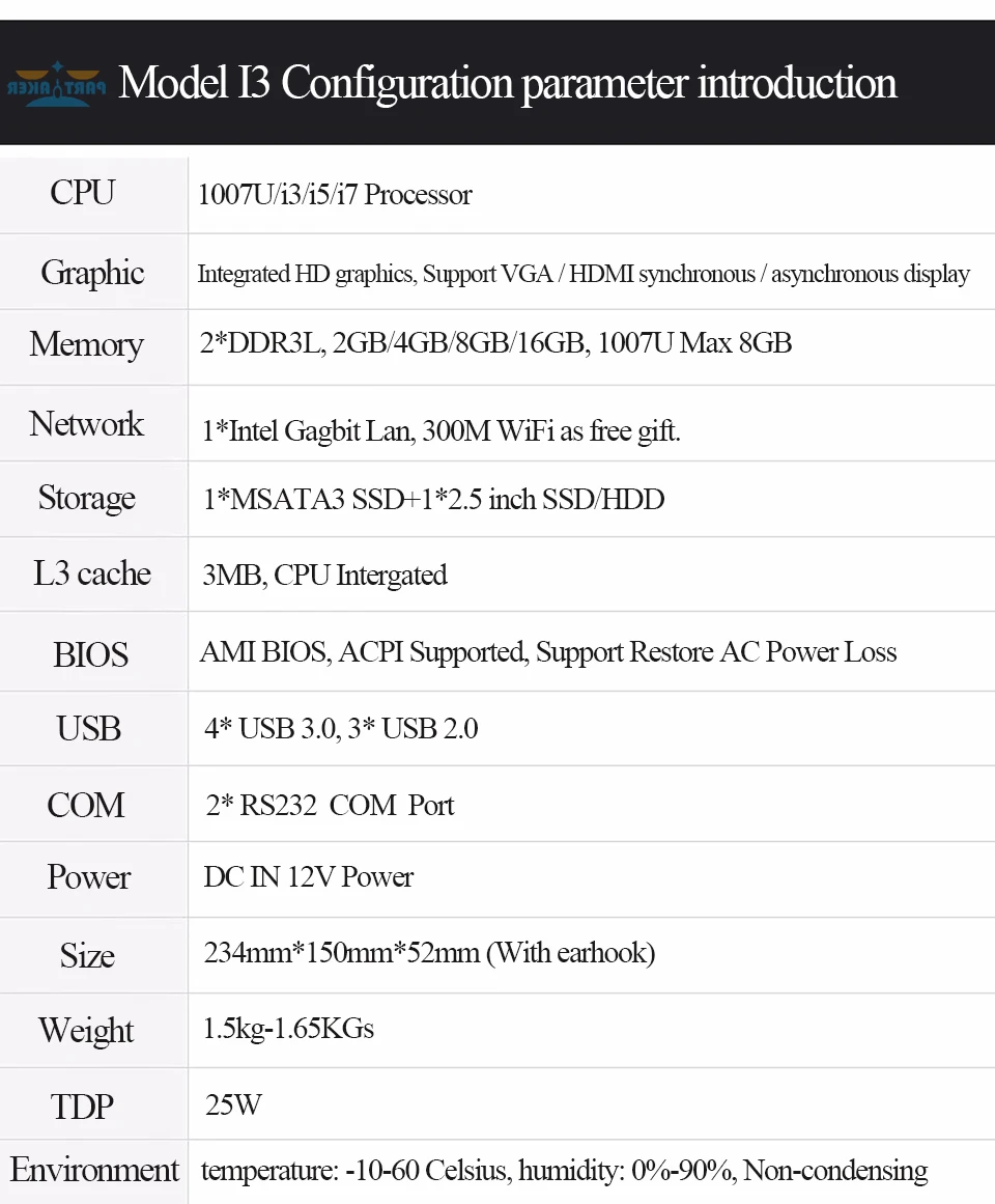 I/O | 1 * VGA + 1 * HDMI 4 * USB 3,0, 4 * USB2.0, 2 * RJ 232 1 * MSATA3.0, 6 ГБ/сек.; 1 * SATA3.0, 6 ГБ/сек. 1 * MSATA SSD, 1 * WiFi модуль 1 * RJ45 10/100/1000 Мбит/с адаптивный 1*1 внутренний диаметр 2,5 мм, внешний диаметр 5,5 мм 1 * Стандартный аудиовход и выход 3,5 |