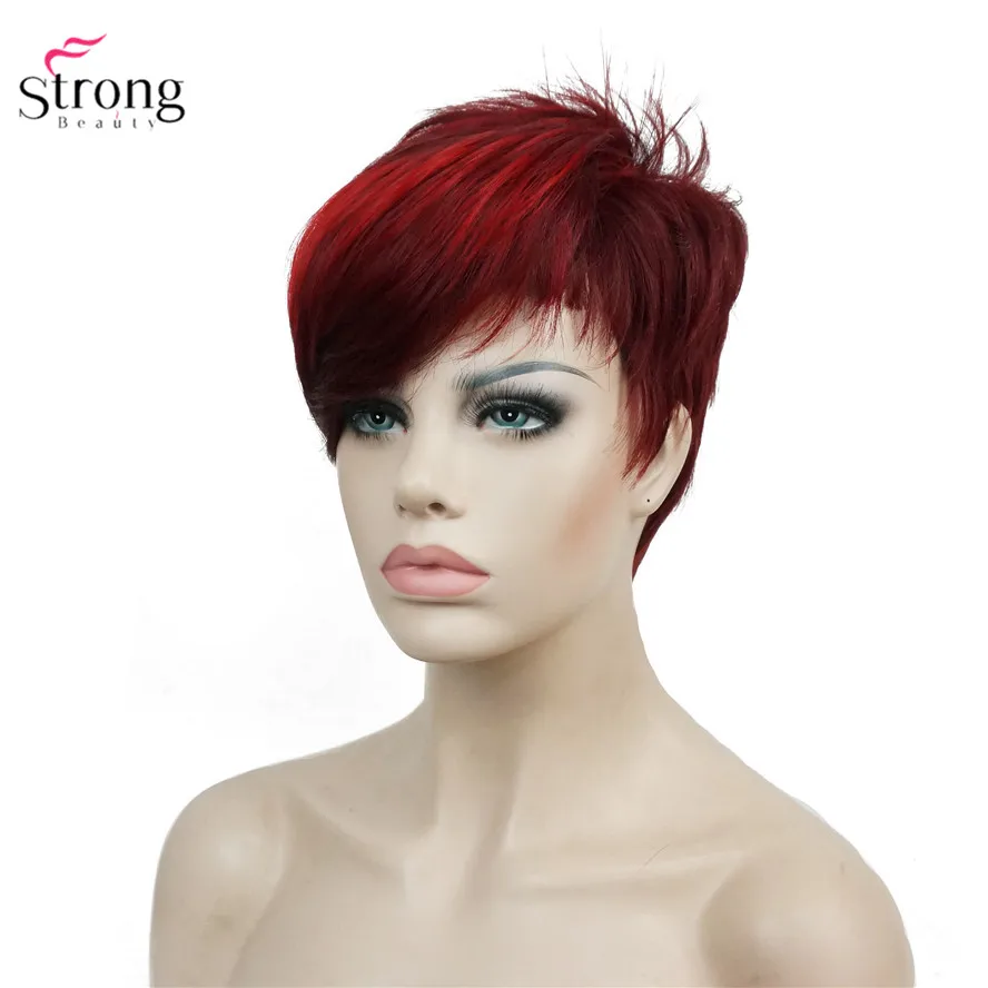 Женский красный короткий парик стрижка Пикси, Синтетические Полные парики без капюшона, натуральные