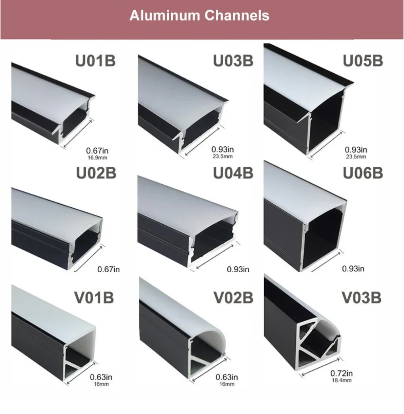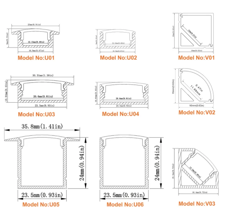 U-образная алюминиевая секция предназначена для утопленного/поверхностного монтажа для привязывания мебели, под шкафом, полками, гипсокартоном, деревянными перегородками и т. д. Можно активировать для создания декоративных люминесцентных полос в стенах, потолке, полу, освещении, рабочих поверхностях, полках, ступеньках, Ниши.