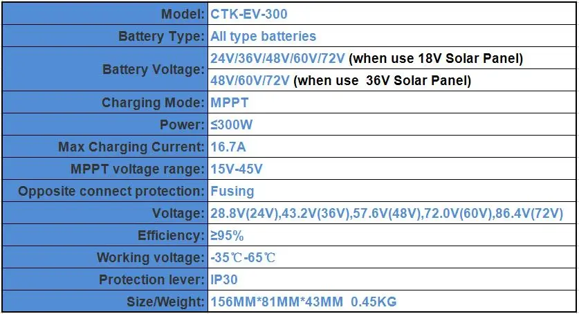 Контроллер предназначен только для зарядки солнечной панели, напряжение 24 В/36 В/48 В/60 в/72 В опционально, свинцово-кислотная или литиевая батарея версия опционально.