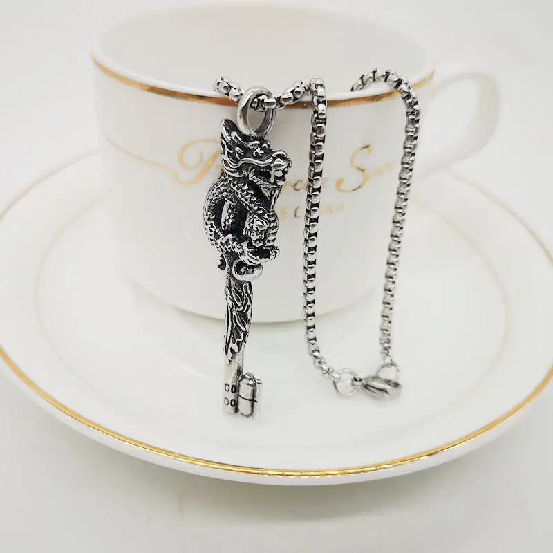 Винтажное серебряное ожерелье с тайным восточным драконом, кулон из нержавеющей стали, мужское панк хип-хоп ожерелье с драконом, ювелирные изделия