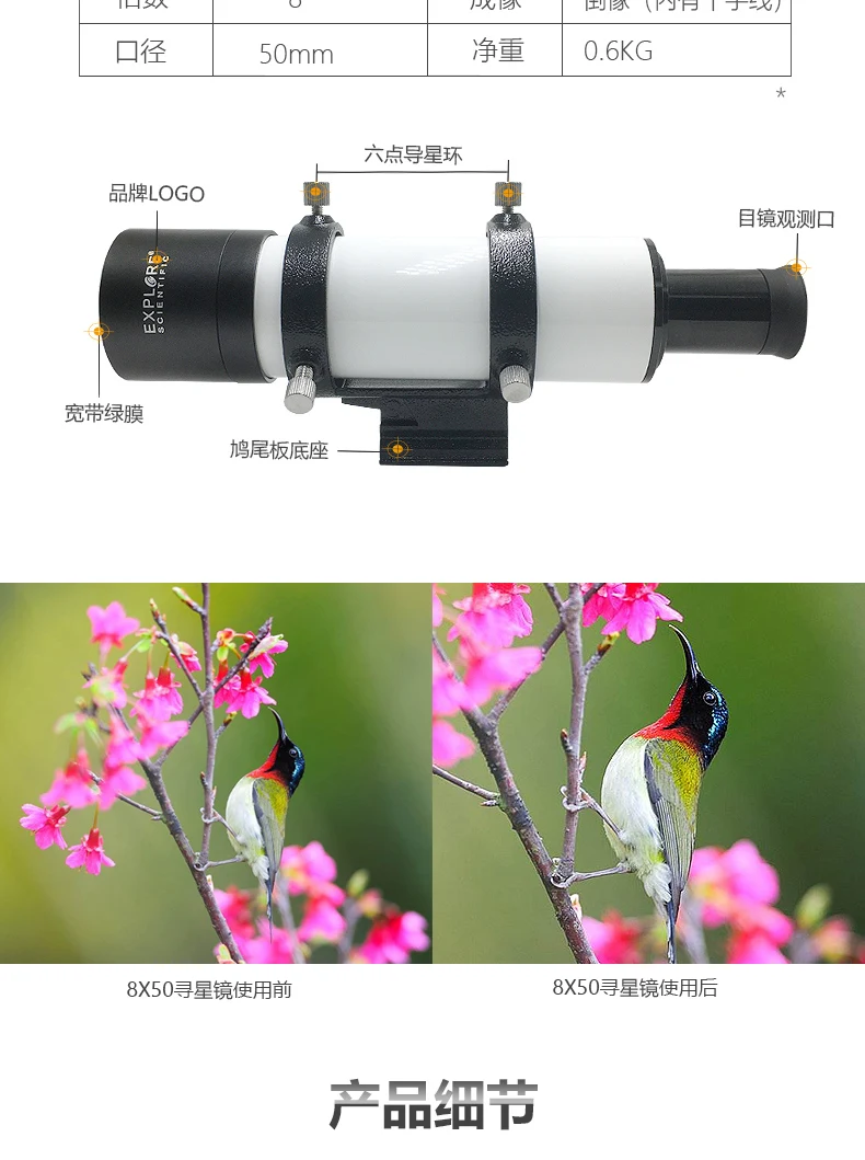 Область поиска 8x50 имеет стандартный перекрестие, чтобы помочь вам точно центрировать объекты. Зритель изображения прямого и непрямого действия имеет поле зрения на 6 °.