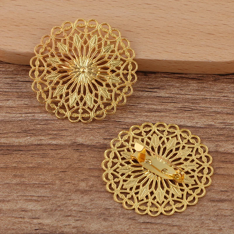 Круглая подставка для броши в форме цветка 38 мм, 5 шт., ажурная подставка для броши из меди и латуни, винтажные аксессуары в стиле ретро для самостоятельного изготовления ювелирных изделий
