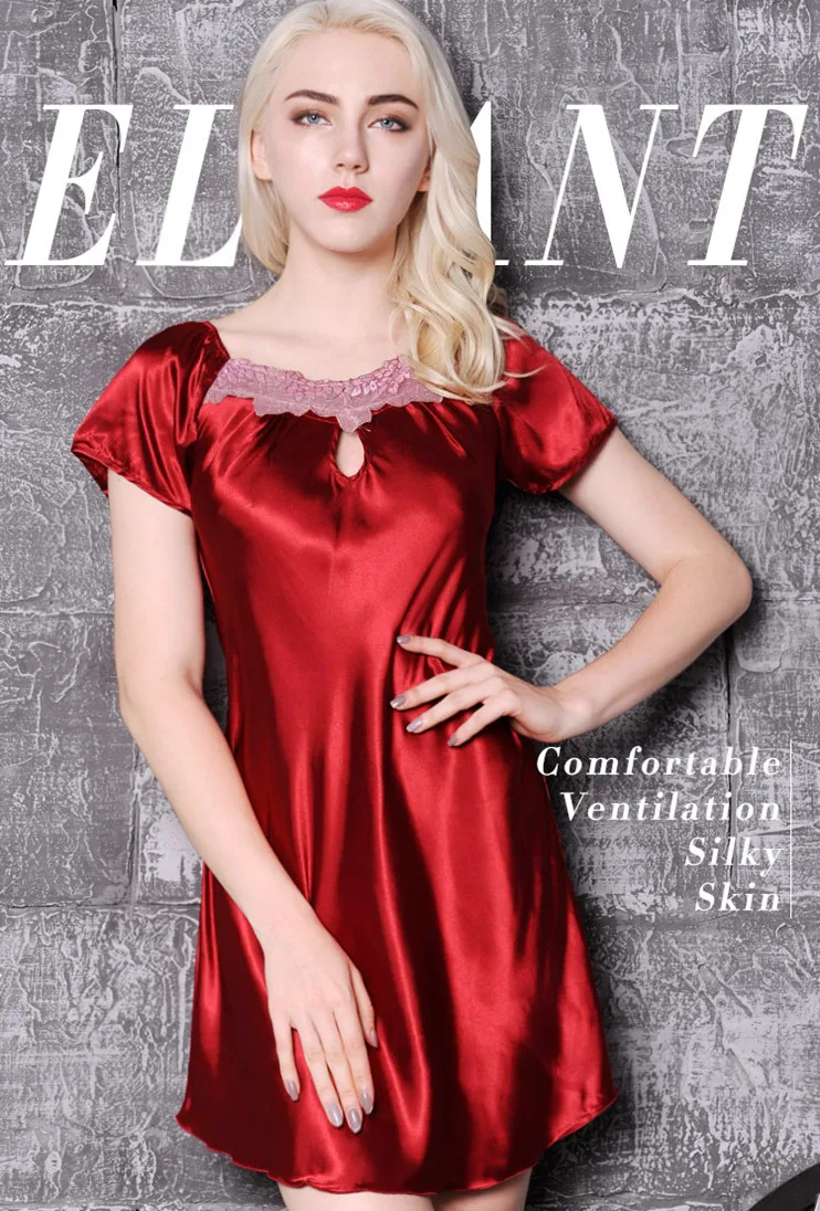 Plus Size Sexy Silk Sexy Sleepwear Very Light SILK Nightdress Nightgown Short Sleeved Nightdress SATIN Suit