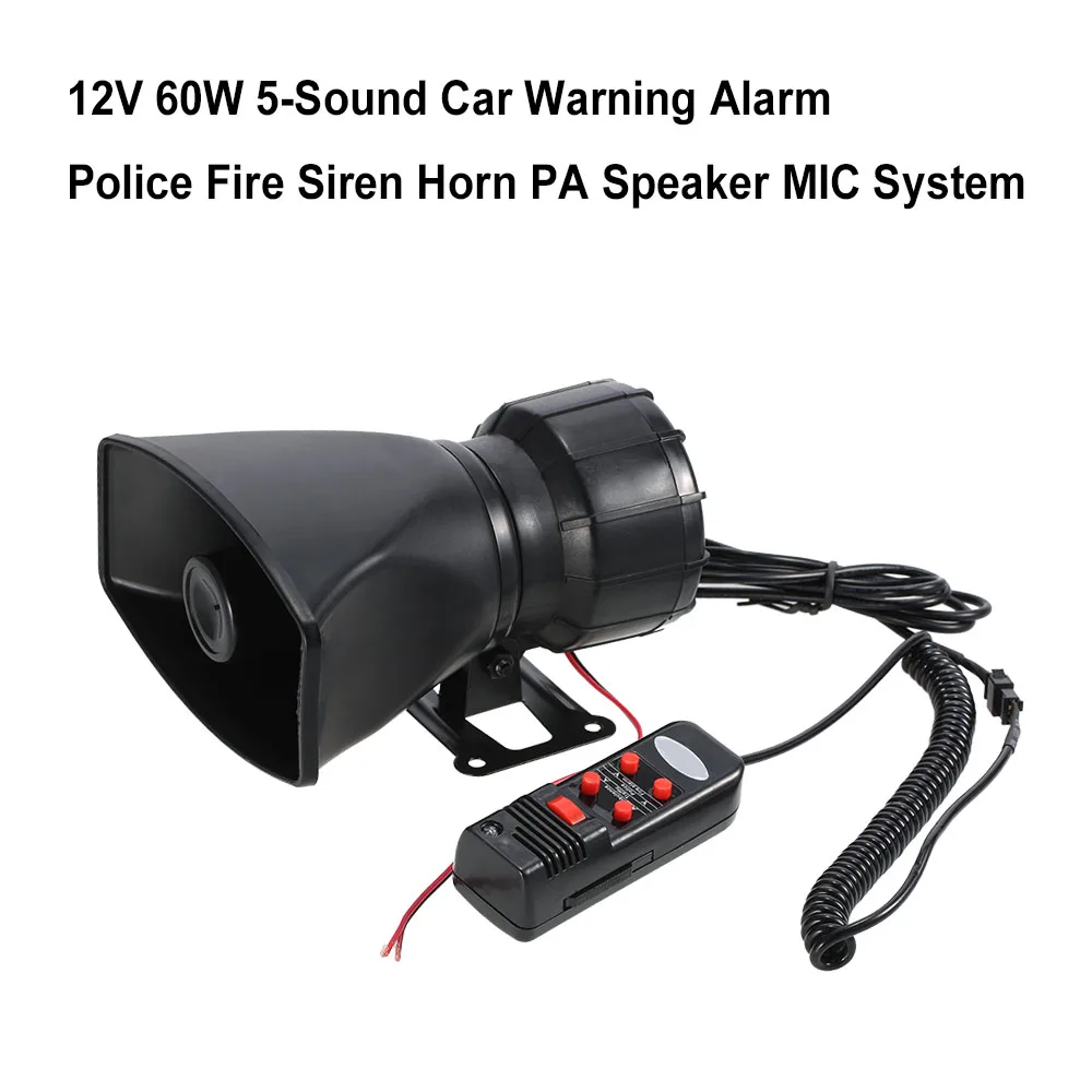 12V 60W 5 Sound Car Warning Alarm Police Fire Siren Horn Loud PA Speaker MIC System