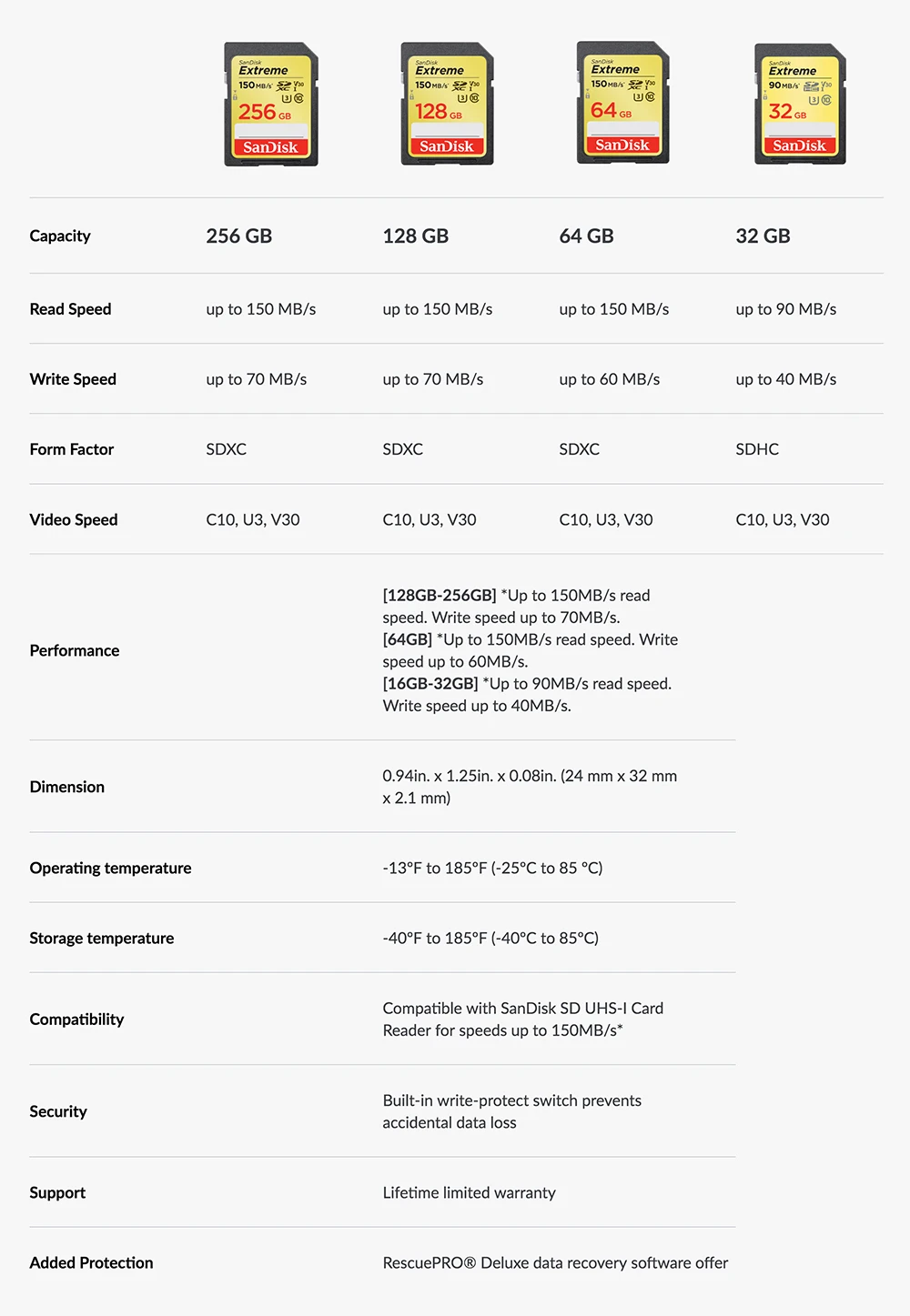 Встроенный и протестированный в суровых условиях, SanDisk Extreme®SD™Карта UHS-I обладает термостойкостью, водонепроницаемостью, ударопрочностью и защитой от рентгеновского излучения.