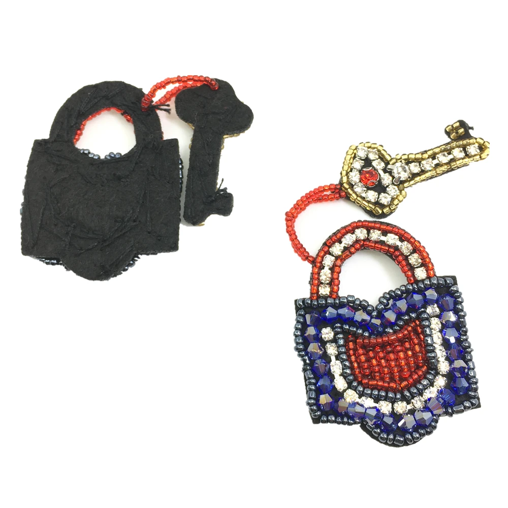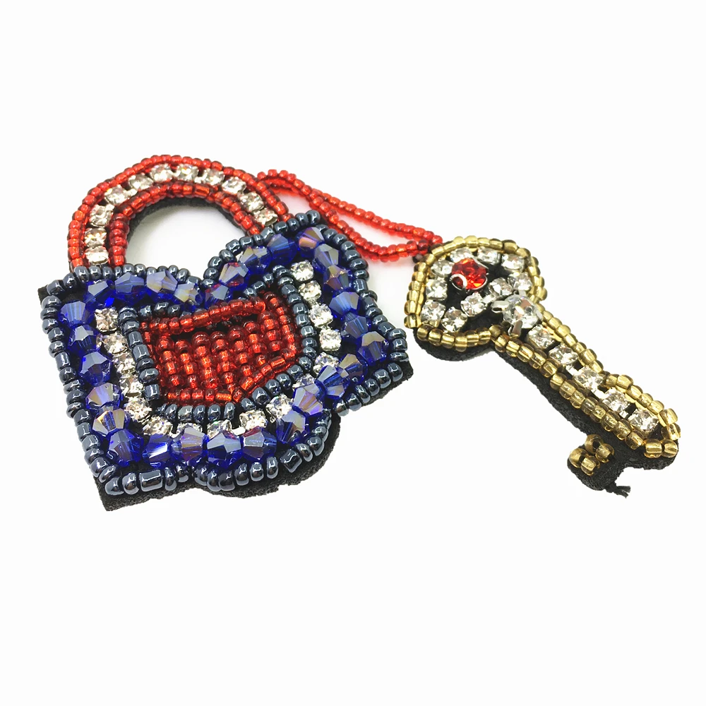 5 шт./лот Пришивные накладные замки с ключом, украшенные кристаллами и аппликацией из бисера, нашивки для одежды, сумки под платье, Аппликации, Parches Bordados Ropa, Швейные аксессуары, сделай сам, AC1007
