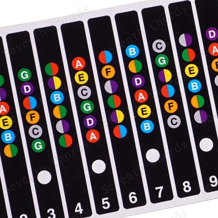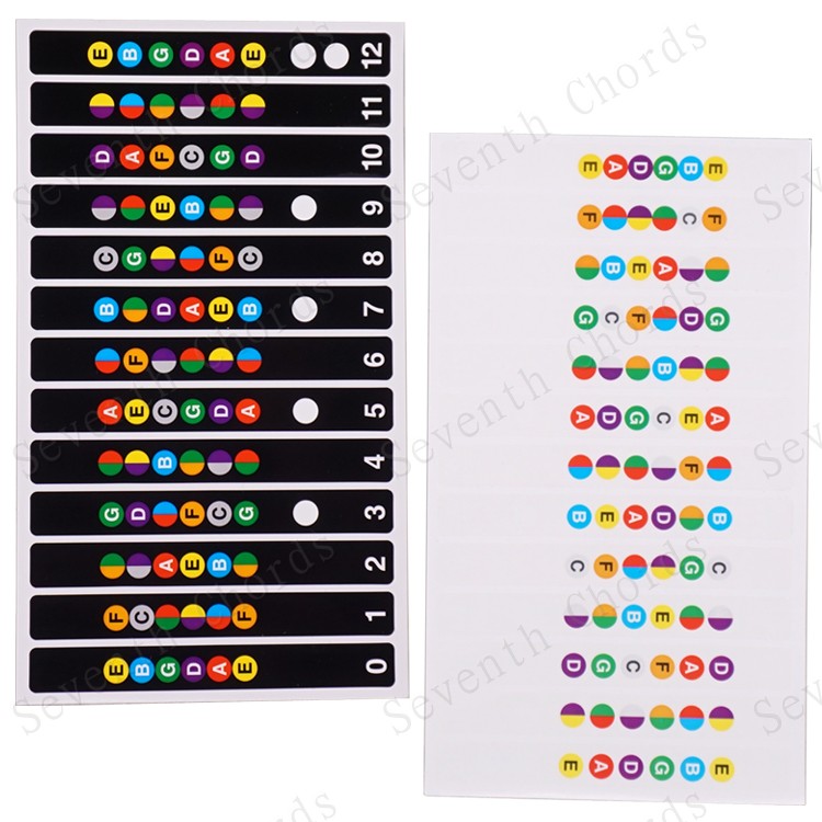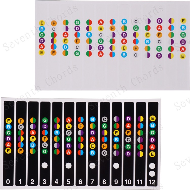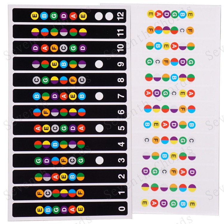 Хорошо липкие наклейки, дизайн для гитары гриф, легко использовать.Подходит для начинающих, очень помогает вам запоминать масштаб и лучше практиковаться.Идеальная помощь для тех, кто заинтересован в обучении гитаре.Цвет: прозрачный и черный