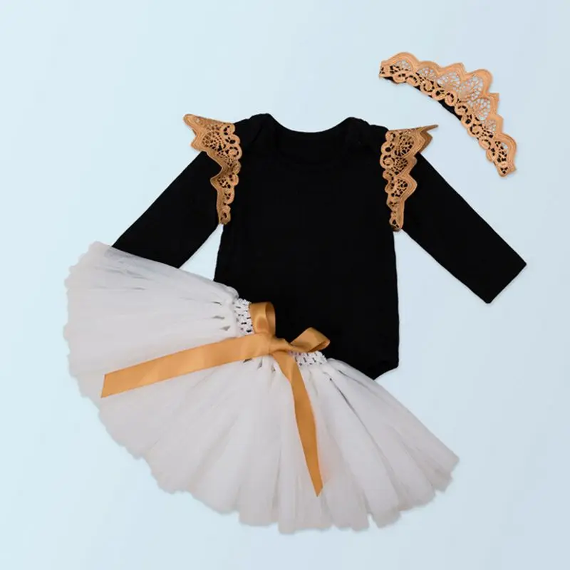 - 1 компл. = 3 шт. = боди для девочек + Корона повязка + кружевная юбка-пачка