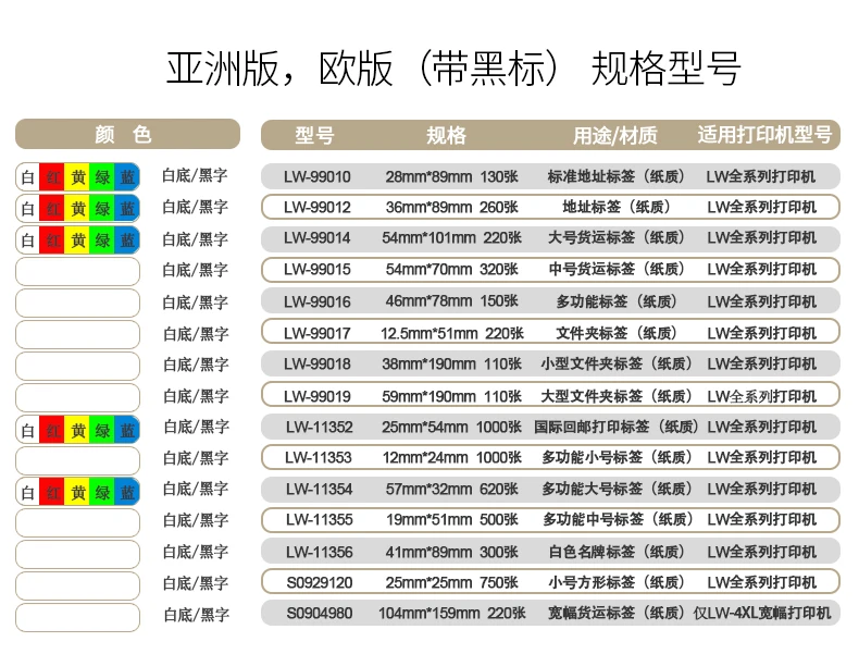Compatiable Printer: 100% compatible For Dymo Labelwriters 310 /320 /330 /400Turbo /450Turbo /450Twin Turbo/ 4XL
