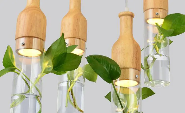 Современный светодиодный подвесной светильник для растений с деревянной стеклянной бутылкой, промышленный светильник e27 220 В, подвесной светильник, светодиодный светильник