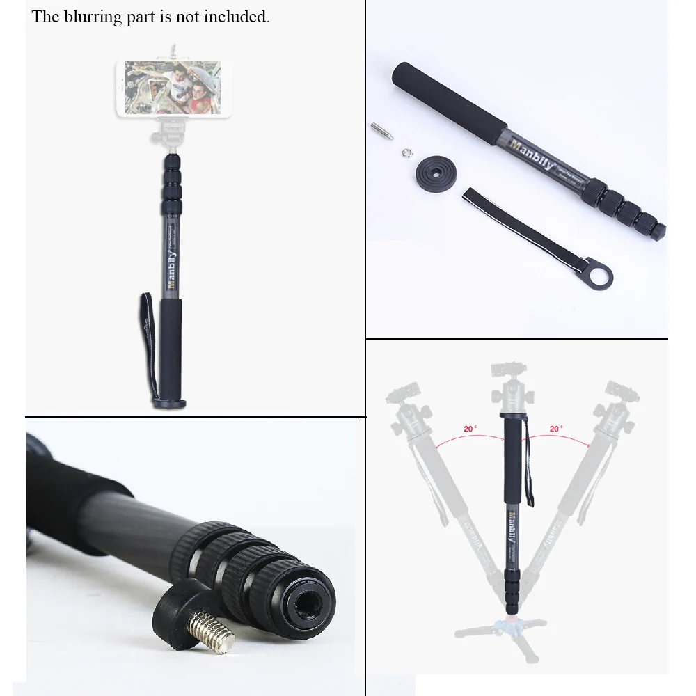 5-секционный легкий монопод для камеры, изготовленный из углеродного волокна, расширяемая длина от 45 см до 165 см.