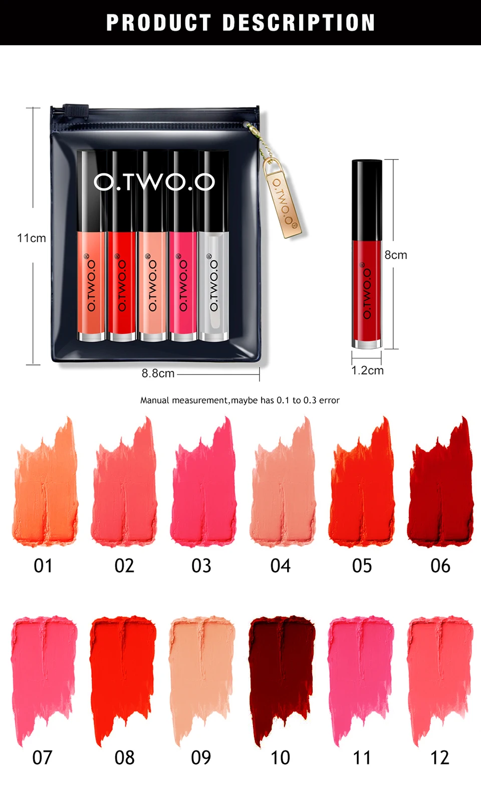 Название брендаO.TWO.OНомер модели6049Режимы работыLip GlossРазмерОбращаем Ваше внимание, чтоКоличество10000ИнгредиентMineral LipglossВес нетто2g*5Номер сертификата20161526Страна/регион производстваCHINAПреимуществоПитательныйПреимуществоТак же увлажняет кожуПреимуществоУвлажняющий кремПреимуществоДругоеЕдиница измерения100000015Метод продажsell_by_pieceКоличество1Вес в упаковке0.07Размер в упаковке, Длина, см15Размер в упаковке, Ширина, см14Размер в упаковке, Высота, см3СертификацииGZZZPackage4pcs Lip Gloss+1pc Lip oilNameMatte Lipgloss