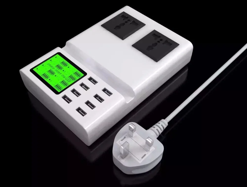 Описание: Вход: AC100-240V 50-60 Гц Выход USB: DC5V-2.4A (макс.) Общая мощность: 8.2A Выход переменного тока: AC100-240V 10A (макс.) Совместимость: Великобритания/США/ЕС (можно выбрать 3 типа) Материал корпуса: термостойкий и огнестойкий Зарядка для телефона, планшета, смартфона, КПК, MP3,MP4,PSP,GPS, устройств bluetooth, некоторых настольных ПК и других цифровых продуктов. Usb-порты: 8 usb-портов Длина кабеля: 1,2 м (0,05 м)
