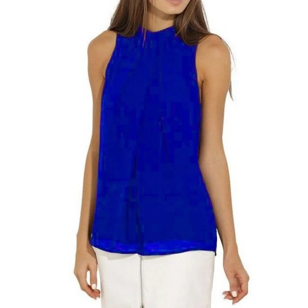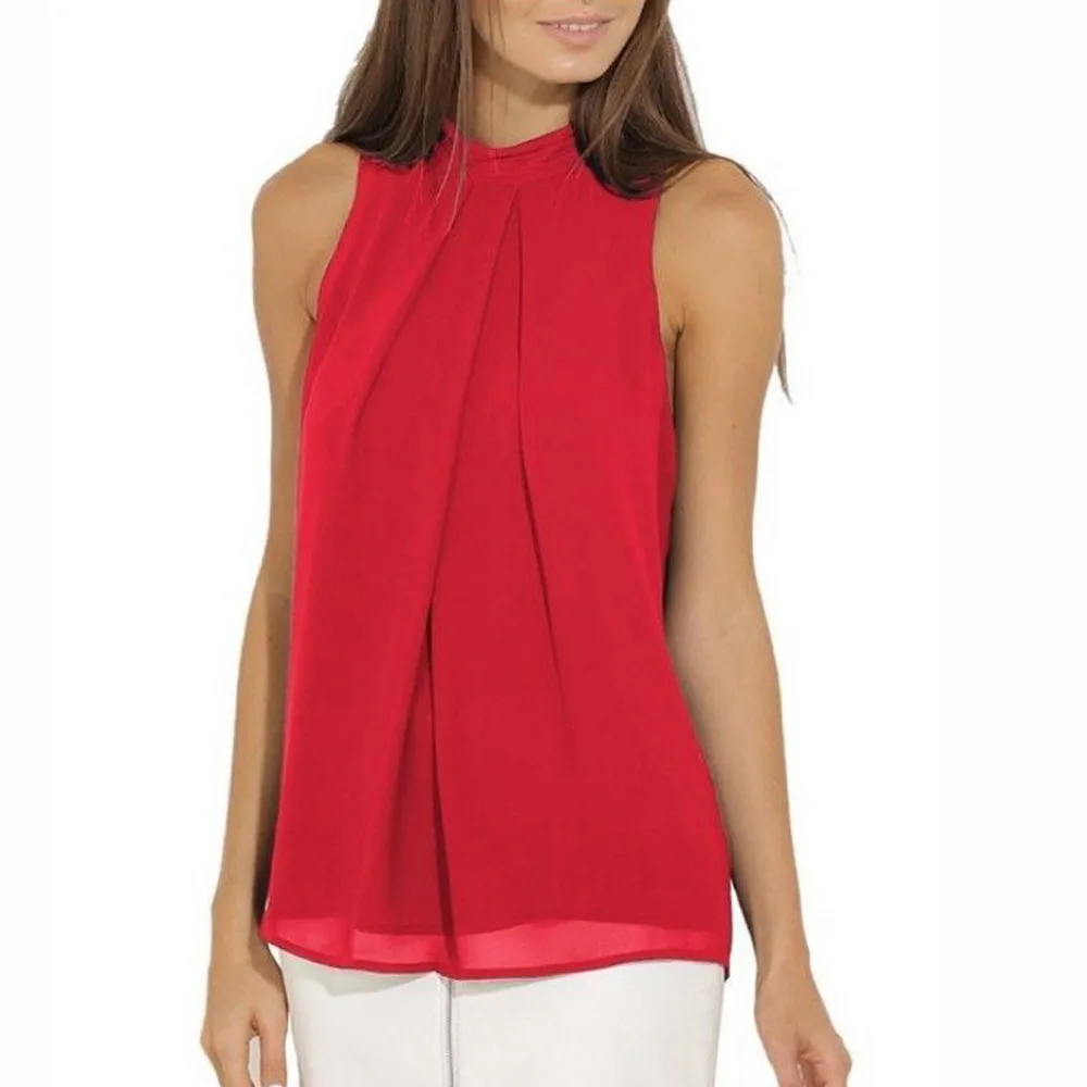 Женская Повседневная шифоновая блузка без рукавов Футболка летние блузки-топы