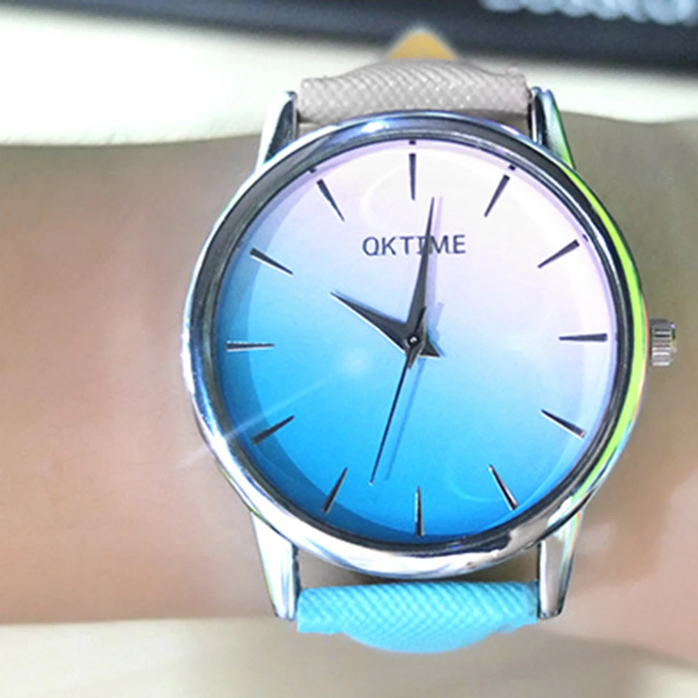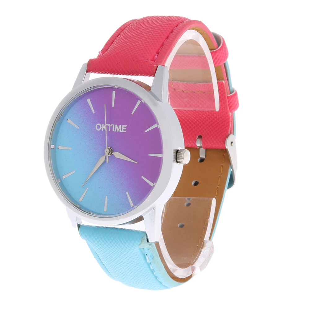 Градиентный цвет тисненый кожаный ремень радужный хит цвет простые женские кварцевые часы