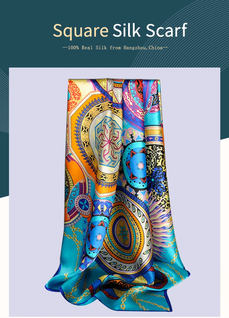 Размеры: 90X90cm или 88x88cm Материалы: 100% натуральный шелк из Ханчжоу, Китай Вес нетто: около 56 г