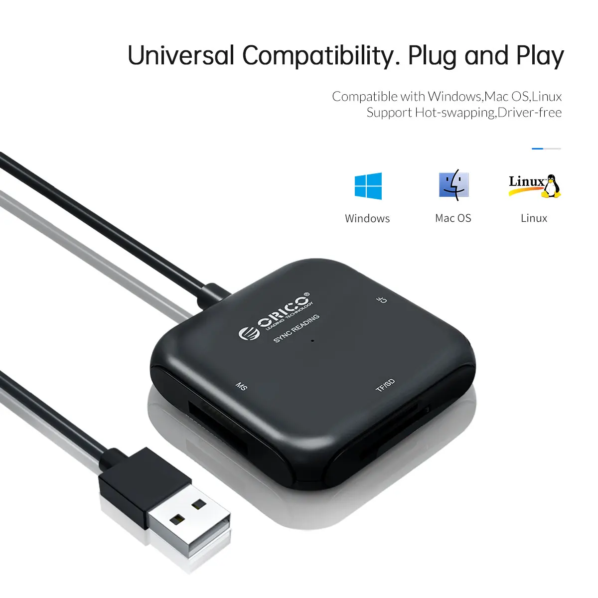 Compatible with Windows, Mac OS, Linux and other systems, suitable for SD / TF / CF / MS and other mainstream memory cards, plug and play, no drivers needed.Hot-swapping supported, no needs of any drivers.