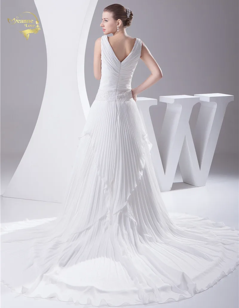 2021 Новое поступление, 100% реальные фотографии, плиссированный шифон, молния, v-образный вырез, длинный поезд, все вокруг Плиссированное свадебное платье