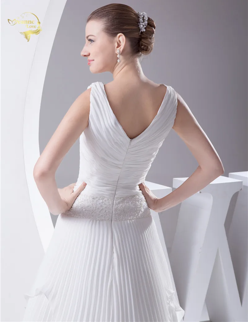 Высокое качество Новые Модные свадебные платья 2021 V шеи шифон морщин Часовня Поезд халат на молнии De Mariage плиссированные платья невесты