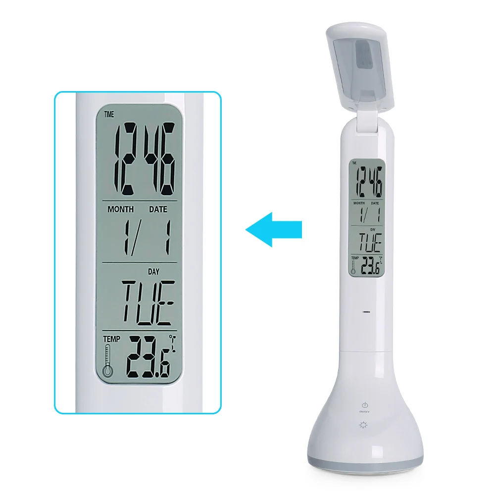 Складной светодиодный светильник с регулируемой яркостью для зарядки, сенсорные настольные лампы с температурным будильником для декора спальни