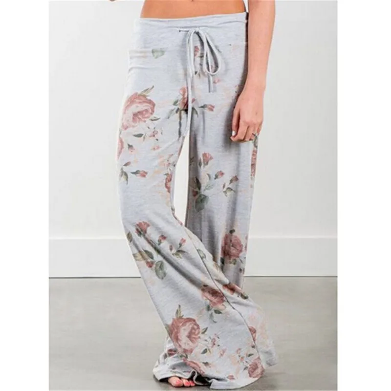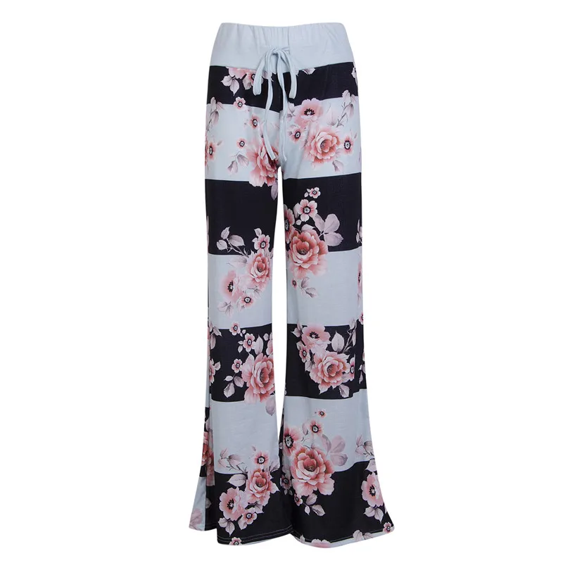 Hirigin 2017 летние широкие брюки с высокой талией женские повседневные брюки палаццо длинные брюки с цветочным принтом 2 типа