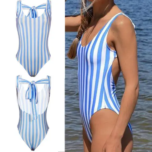 2017 Женский сексуальный полосатый Бандаж пуш-ап с эффектом потертости, цельный комплект бикини