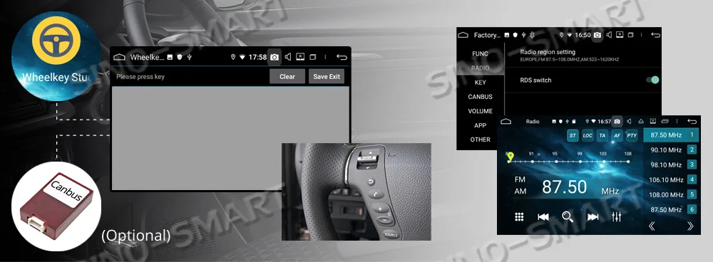 2. Радио с RDS (во всем мире радиочастота, Слушайте радио и навигацию одновременно) 3. Поддержка управления рулевым колесом (нажмите приложение управления, чтобы установить или контролировать canbus Нет необходимости настройки)