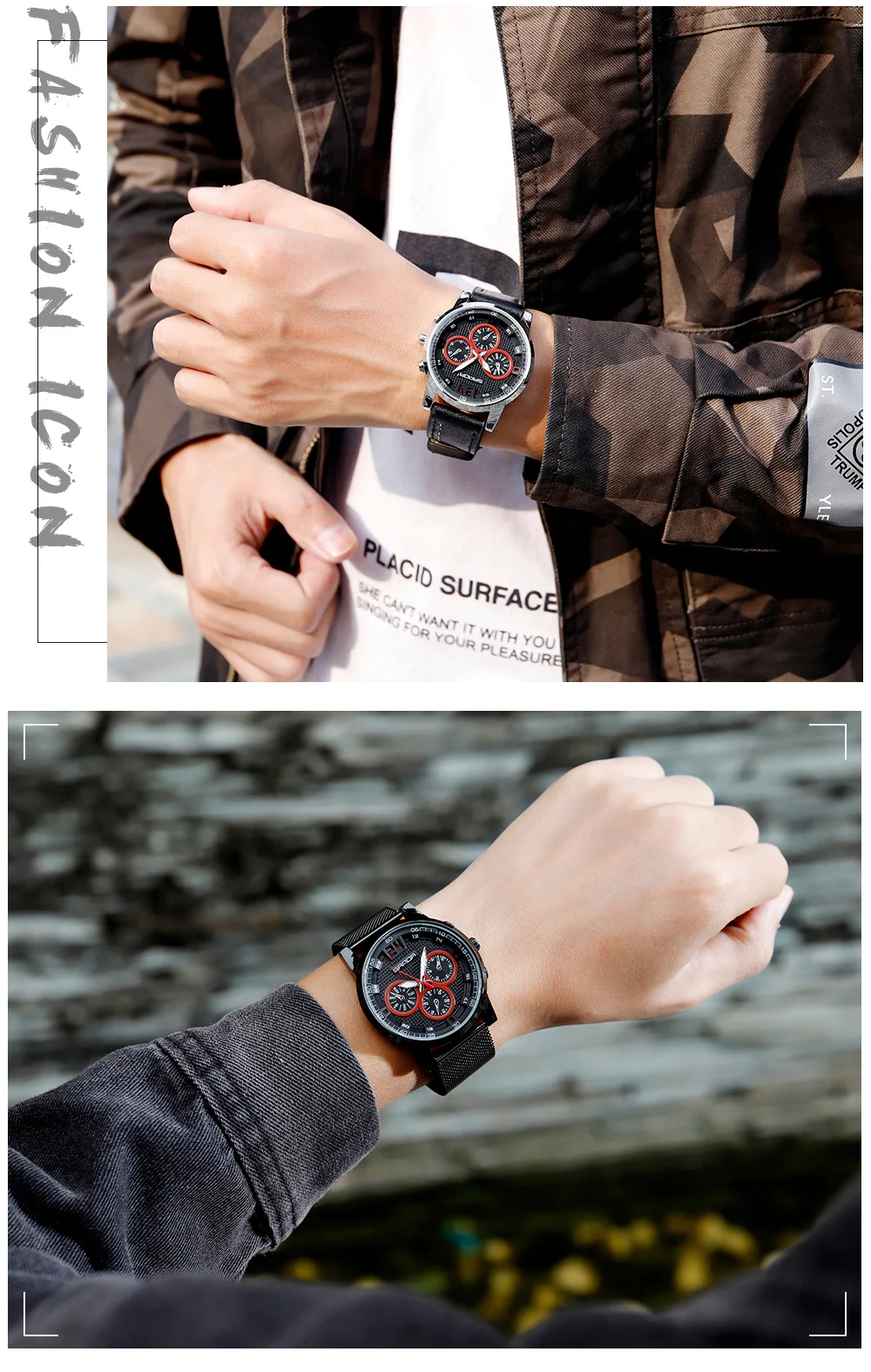 Марка: SANDA Эндер: мужские часы Стиль: Модный и повседневный стиль, спорт Стекло: минеральное закаленное стекло Таблица корпуса: корпус из металлического сплава Батарея: оригинальный аккумулятор Ремешок для часов: часы с сетчатым ремешком • Диаметр циферблата: 43 мм/1,69 В Толщина корпуса: 11,4 мм/0,45 в Ширина ремешка: approx21.7 мм/0,85 в Длина ремешка: 240 мм/9,45 в Функции: с водонепроницаемым чехлом и возможностью погружения на глубину до 30 м Замеры сделаны вручную, если у вас возникли какие-либо ошибки, просим отнестись к этому с пониманием. Пожалуйста, не нажимайте на ключи под водой и не кладите в горячую воду.Смотрите так же другие товары: