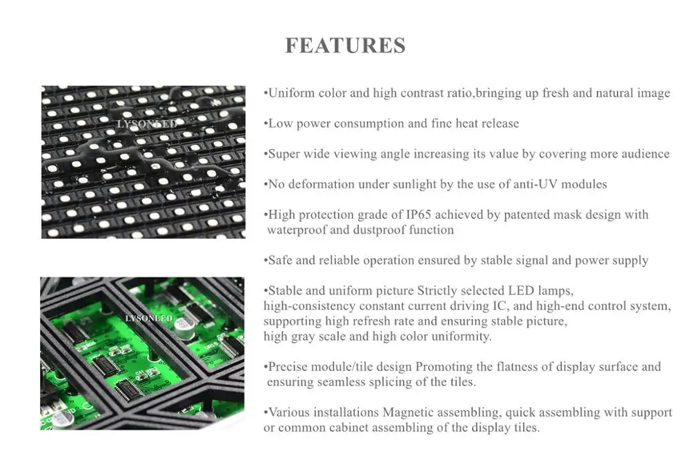 Упаковочный лист: 46 шт P13.33 открытый полноцветный светодиодный модуль 46 шт. плоский ленточный кабель для передачи данных 23 шт. кабель питания 46 шт. резиновые бусины
