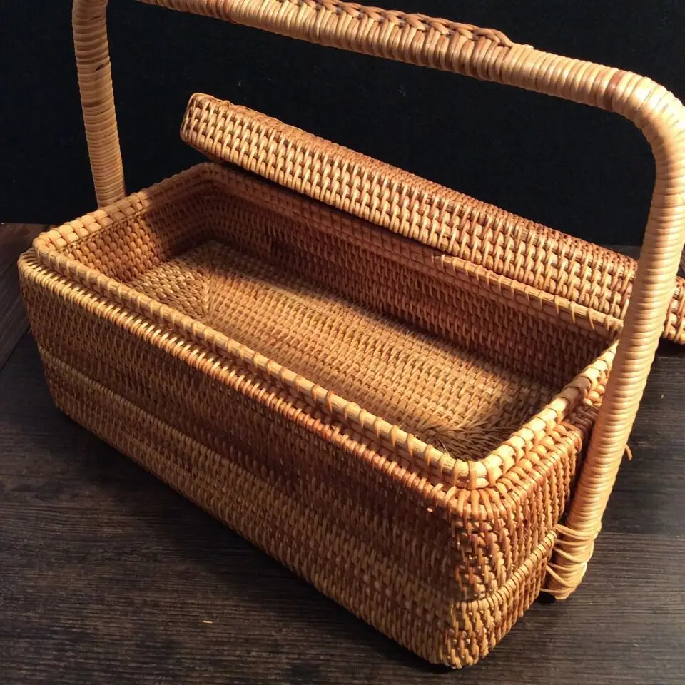 1 * коробка для еды из ротанга с крышкой и ручкой