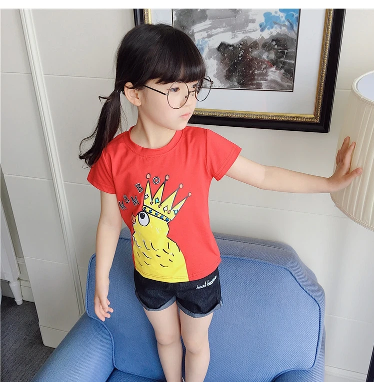Рубашки для мальчиков и девочек; хлопковые детские топы с рисунком «King bird»; футболки с рисунком
