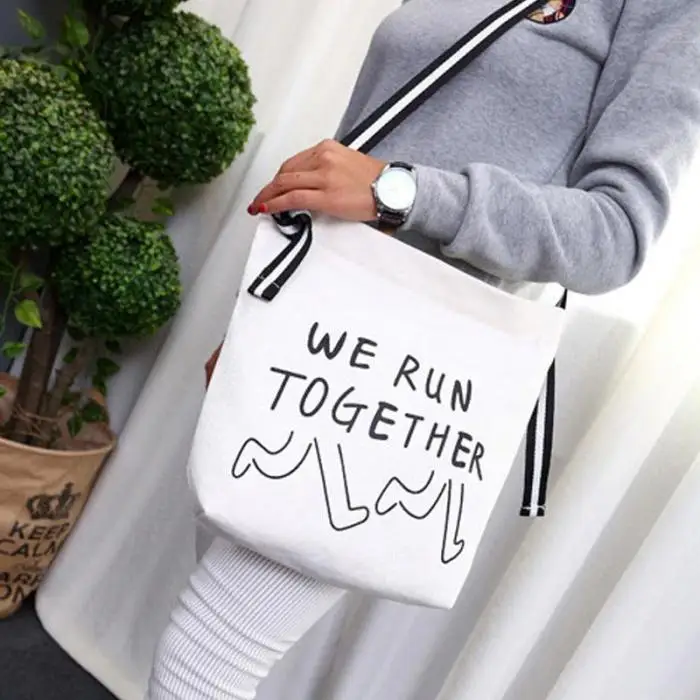 Модная Корейская женская Холщовая Сумка через плечо с буквенным принтом, полосатая сумка на ремне, Женская Повседневная сумка через плечо ![]()