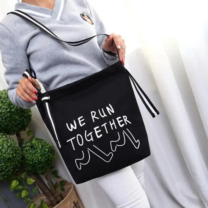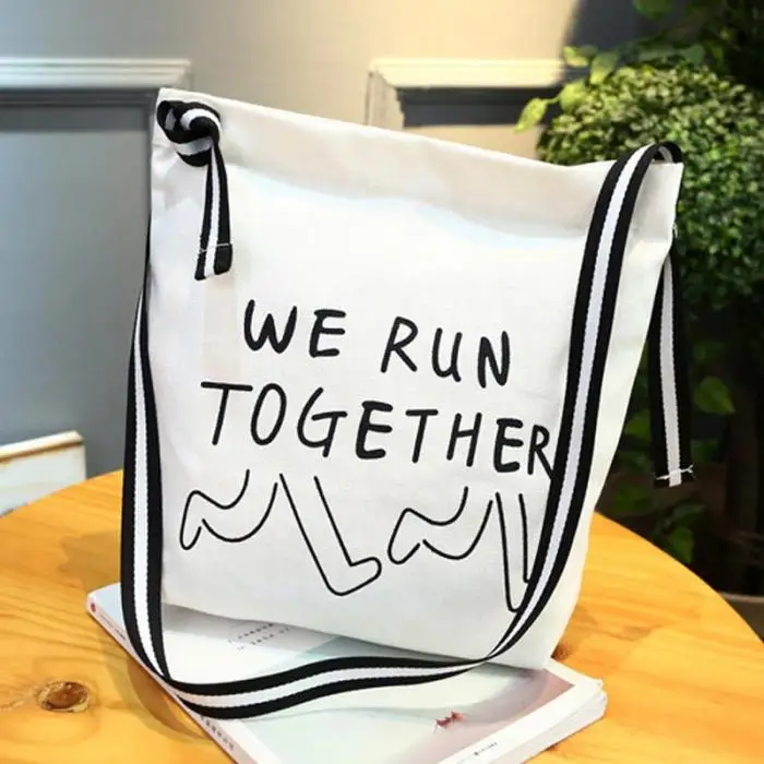 Модная Корейская женская Холщовая Сумка через плечо с буквенным принтом