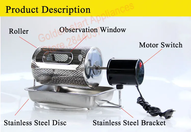 Эта машина разделена на барабан из нержавеющей стали с отверстиями и без отверстий, жареные кофейные зерна могут быть выбраны отверстия, выпечки зерна можно приобрести без отверстий, пожалуйста, выберите в соответствии с вашими предпочтениями.