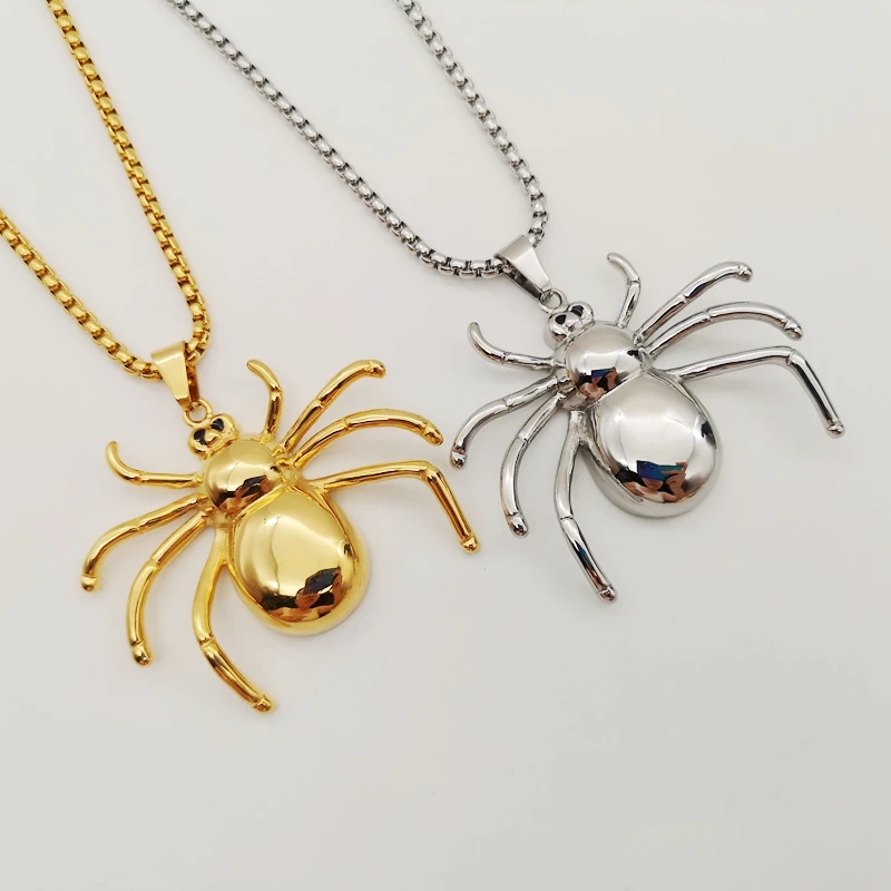 316L нержавеющая сталь хип-хоп полированный большой паук кулон и ожерелье мужское крутое животное паук модное ожерелье ювелирные изделия
