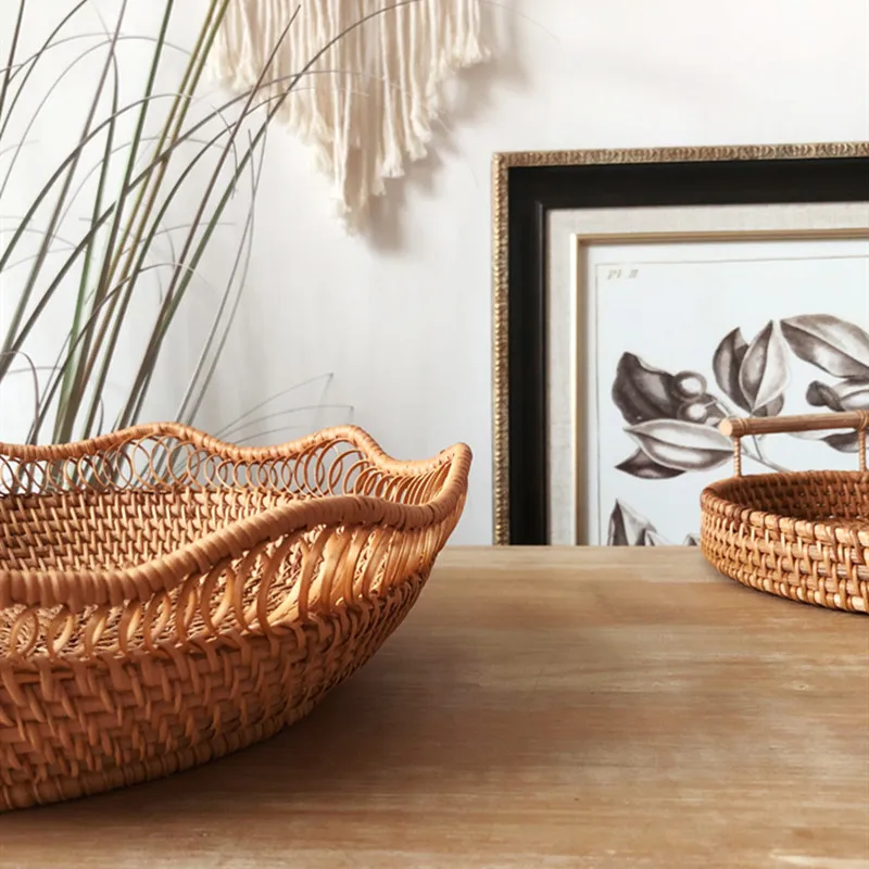 Ротанговая корзина для фруктов, винтажный лоток для сухих фруктов, дизайн дисплея, бытовая тарелка для еды, ретро ежедневный закуска, шестигранные подносы для хранения