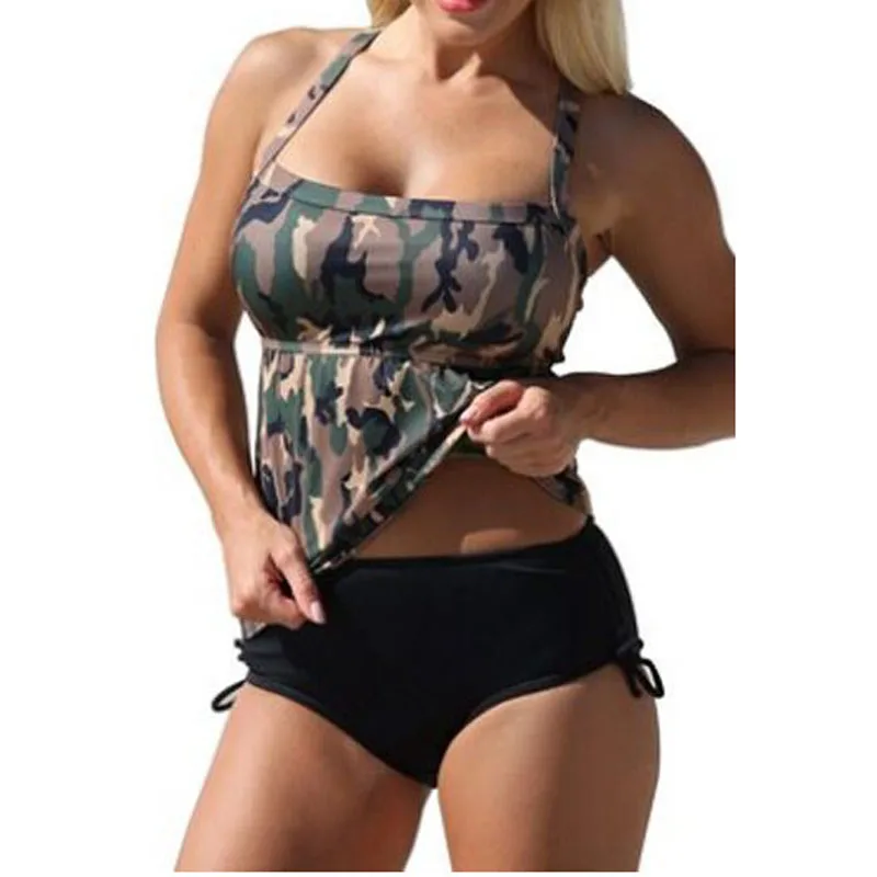 2017, женский купальник размера плюс, армейский зеленый Камуфляжный принт, комплект из двух предметов, пляжная одежда, женский купальник, большие S-5XL