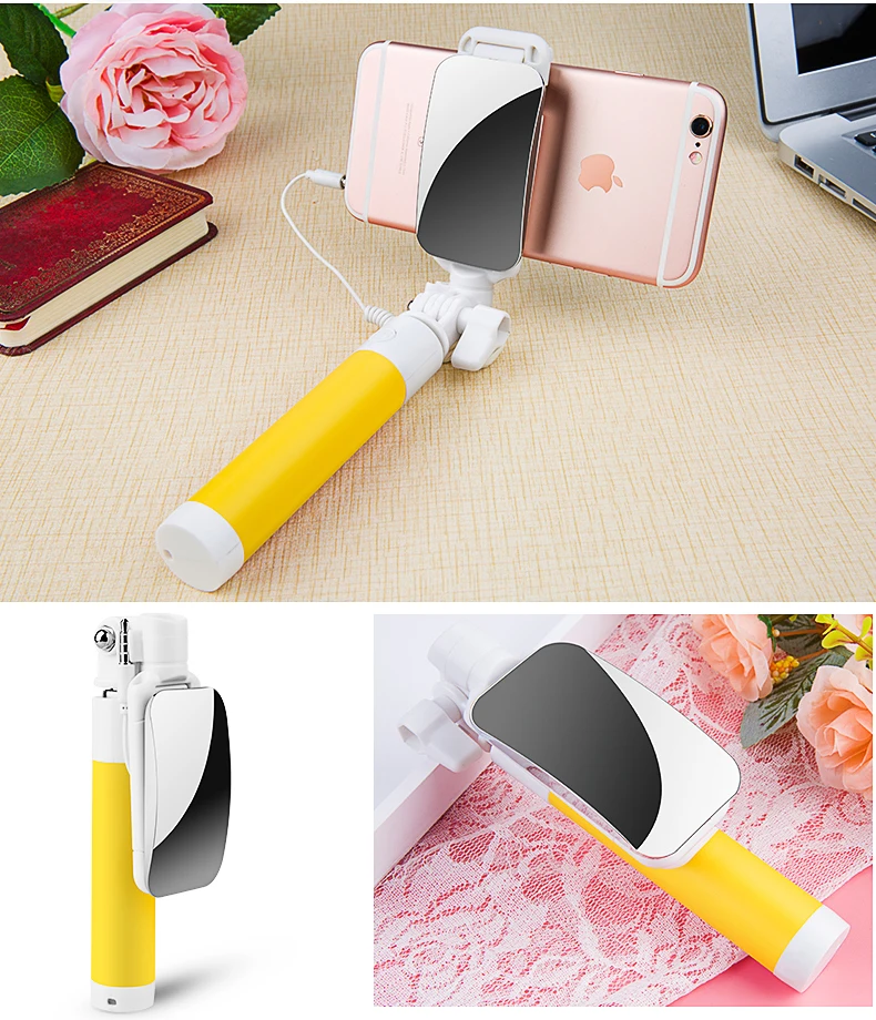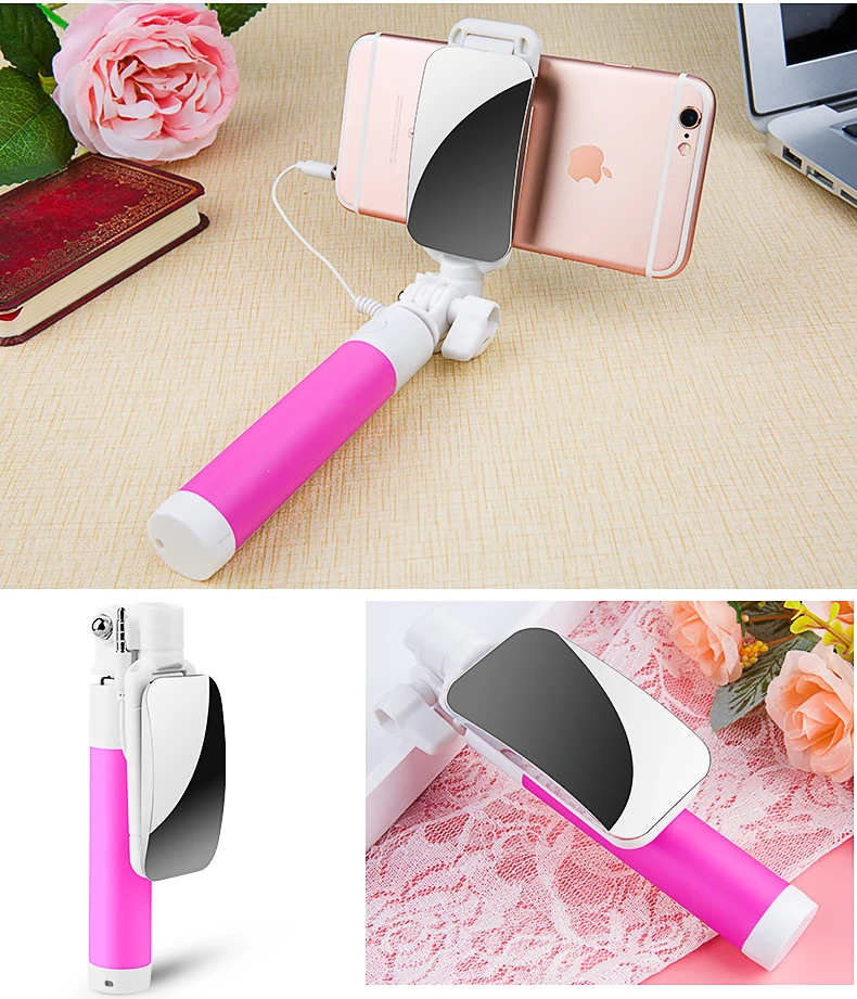 Новый ручной выдвижной селфи палка монопод Штатив для телефона проводной селфи палка с зеркалом для Huawei для iphone 5S/ 6 S плюс