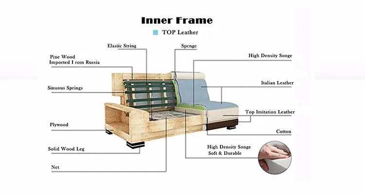 1. Сенсорная поверхность дивана: итальянская кожа/верх из натуральной кожи + ПВХ, подходит, может быть настроена на основе требований заказчика.