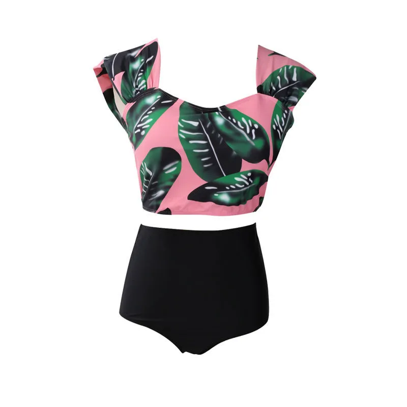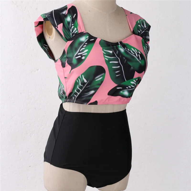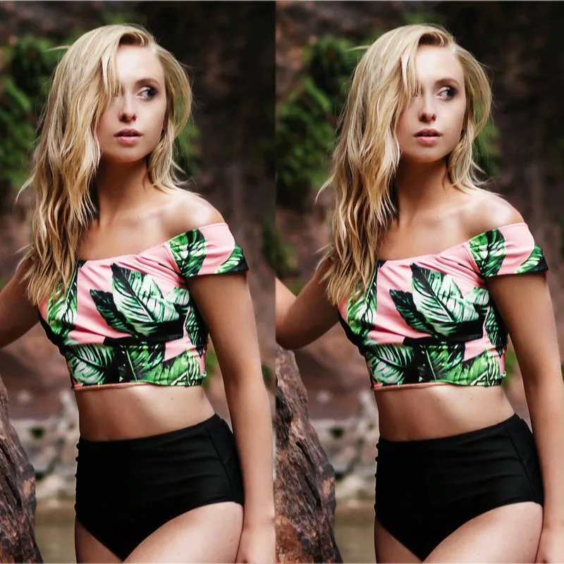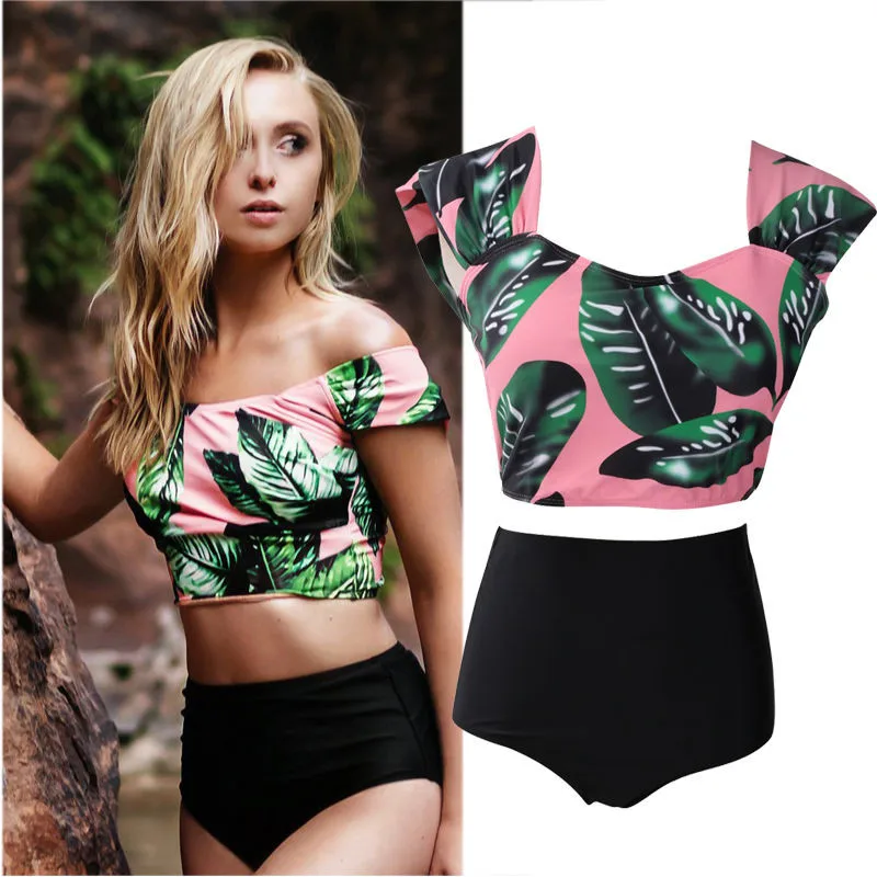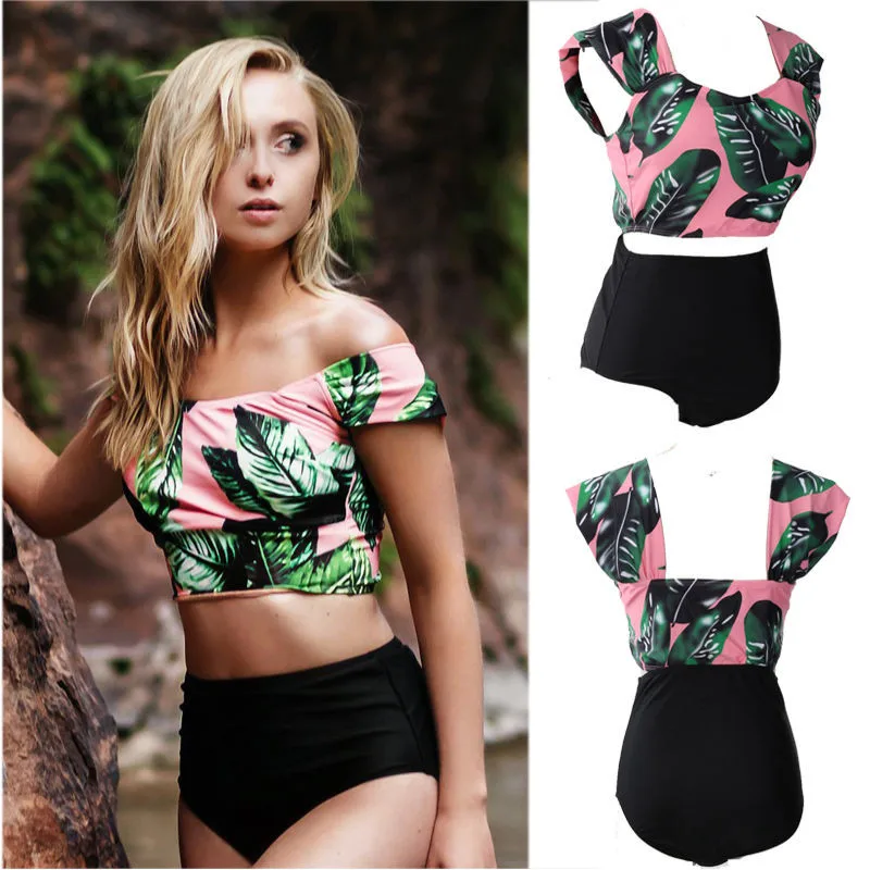 2017 зеленый купальник с принтом листьев, сексуальный женский комплект бикини с открытыми плечами, купальный костюм, монокини, купальник, бикини, Maillot De Bain Femme