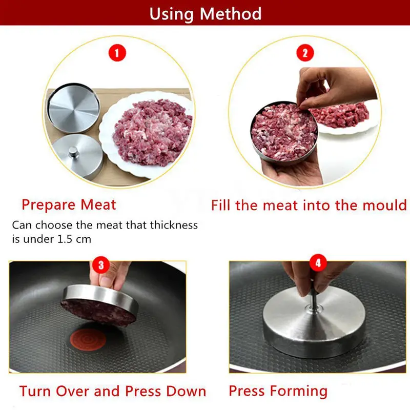Гамбургер Пэтти плесень БургерМясорубка барбекю гриль Автоматическая пресс машинаВысокое качество и абсолютно новый 100% Основной цвет: как на картинке Новинка в моде Материал:Нержавеющая сталь