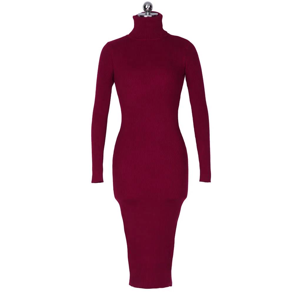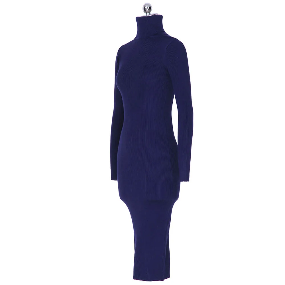 | Краткое описание | Женское осенне-зимнее платье-свитер, облегающее эластичное платье-поло с высоким воротником и длинным рукавом, сексуальное облегающее платье миди, трикотажное платье |